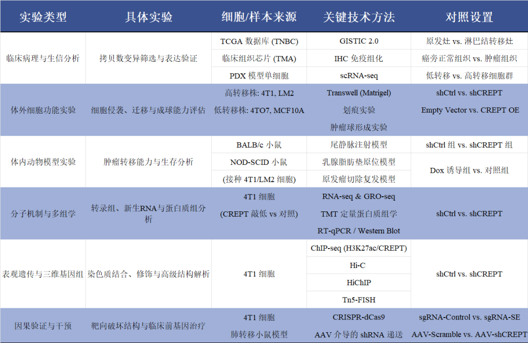 從機製研究角度看,TNBC轉移並非由單一突變事件驅動,而是一個涉及基因組變異、表觀調控、轉錄重編程和微環境適應的複雜過程。大量研究已關注 TP53、PI3K-AKT 等經典通路,但這些改變並不能完全解釋TNBC中“為何某些腫瘤細胞會獲得強烈轉移能力“。尤其值得注意的是,體細胞拷貝數變異在TNBC中高度常見,卻長期被視為背景噪音,其如何具體塑造轉移相關轉錄程序,仍缺乏係統性解釋。